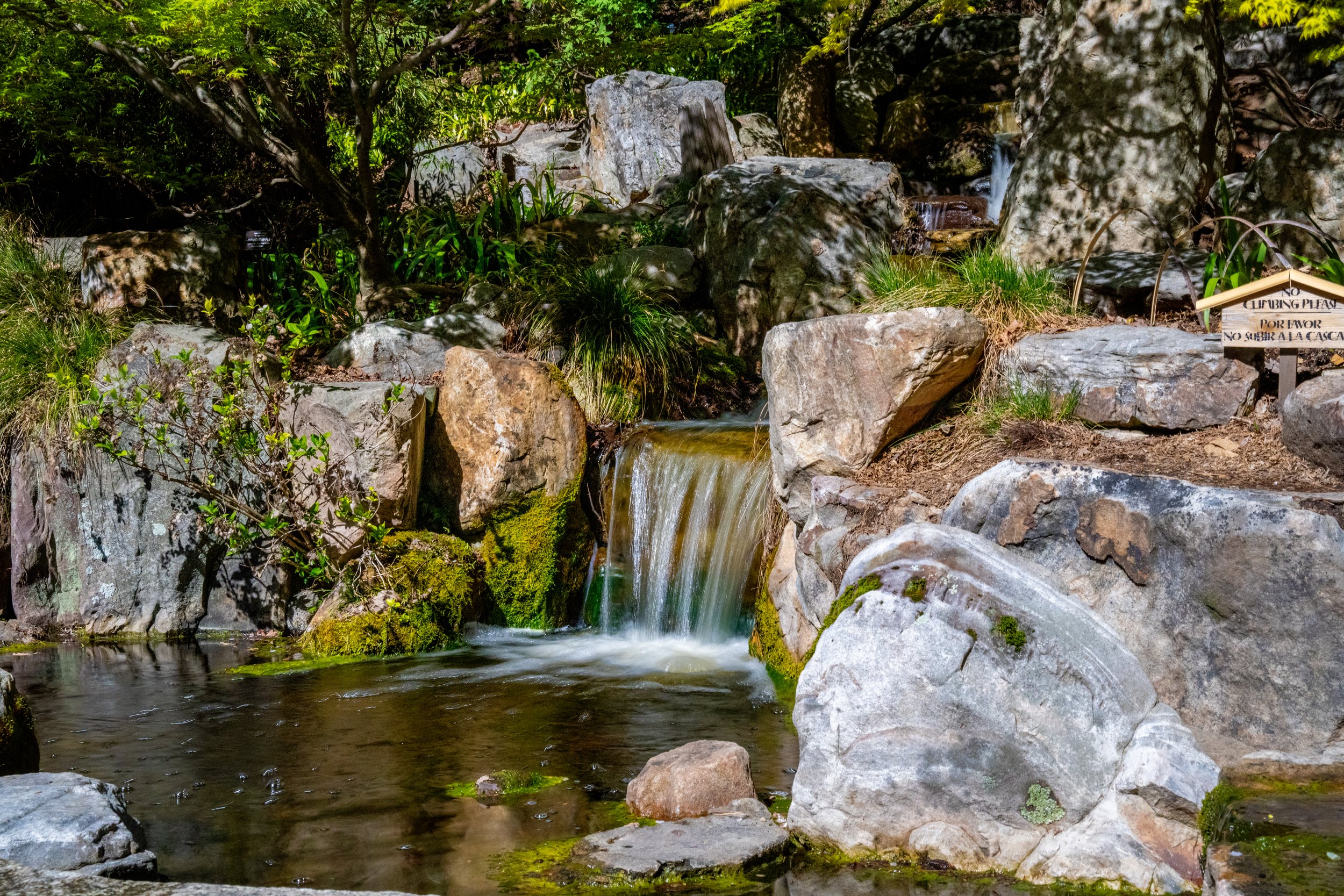 There are numerous water features throughout the gardens. Some are pond sized, large and elaborate, and include a waterfall.